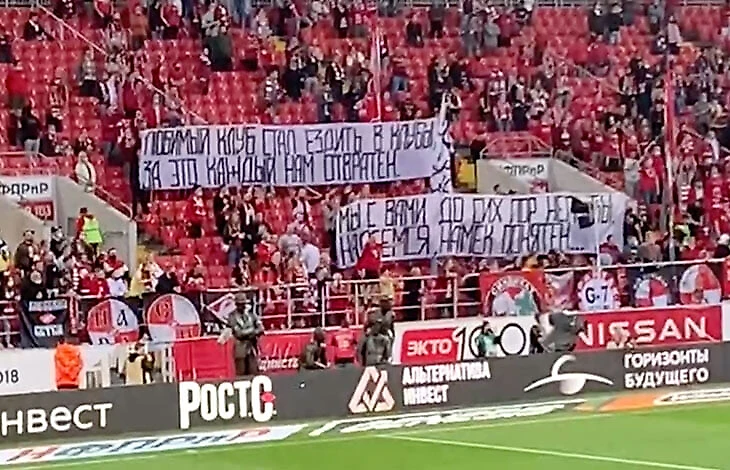 Фанаты «Спартака» продолжают прессовать свою команду. Поводов полно: только что москвичи проиграли дома «Сочи» – 1:2. Получилось больно, потому что после скучного первого тайма «Спартак» забил первым, но следом за 12 минут пропустил дважды.