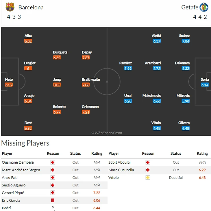 Кого брать: Хозяев. И Барса и Хетафе пока скорее пока ищут свою игру и логичнее ставить на более классных хозяев. Потратьте бюджет на Депая(9,5) с Брейтуэйтом(8) или Альбу(6,5) с Нето(5,5).