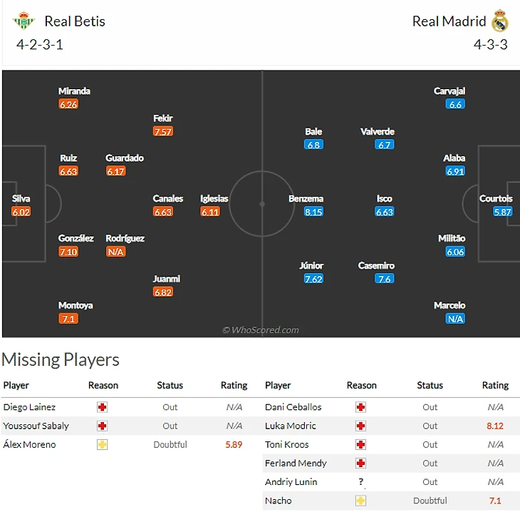 Но пока подписей под контрактом нету, Королевскому клубу лучше бы сосредоточиться на более приземленных задачах и придумать как строить оборону, если в Севилью не смогут отправиться поврежденные Начо(6) и Марсело(6,5).