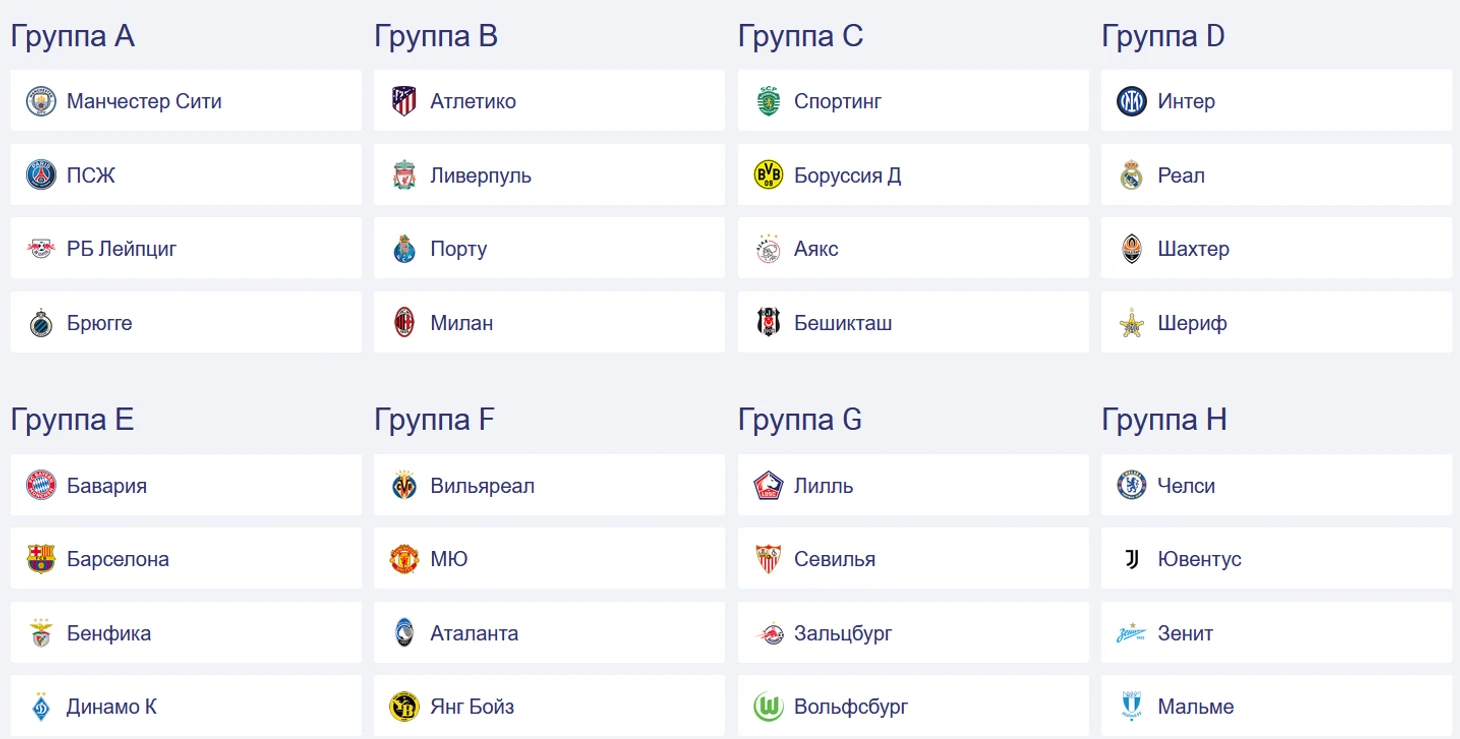 Зенит с Ювентусом и Челси, Спартак с Наполи и Лестером, а Локомотив с Лацио и Марселем.