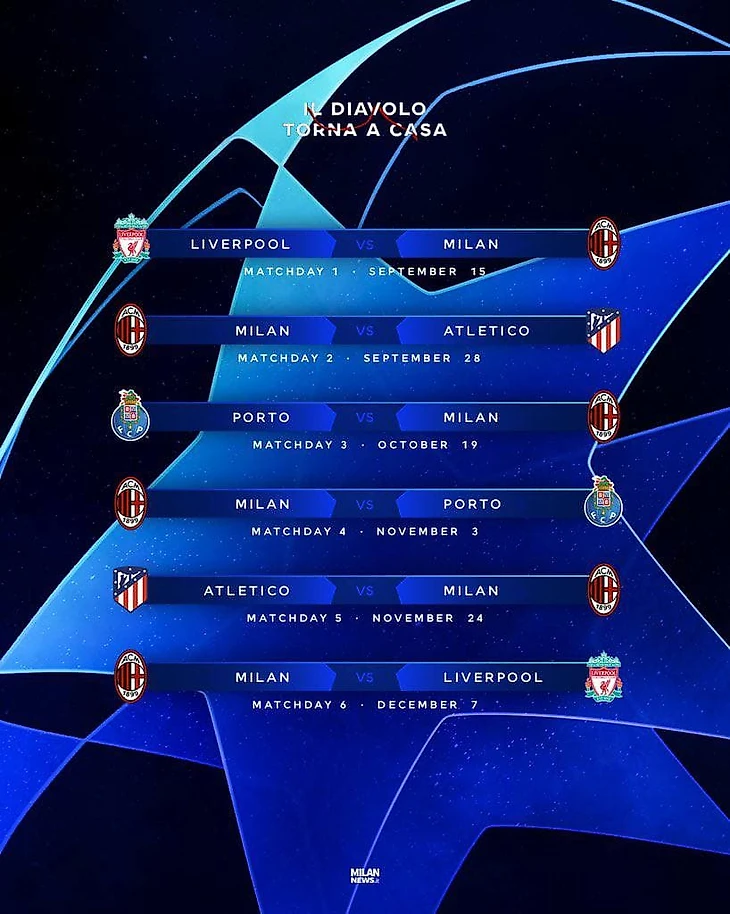 Между прочим, уже даже известен календарь матчей «Милана» в Лиге чемпионов – стартуем в гостях против «Ливерпуля» 15 сентября.