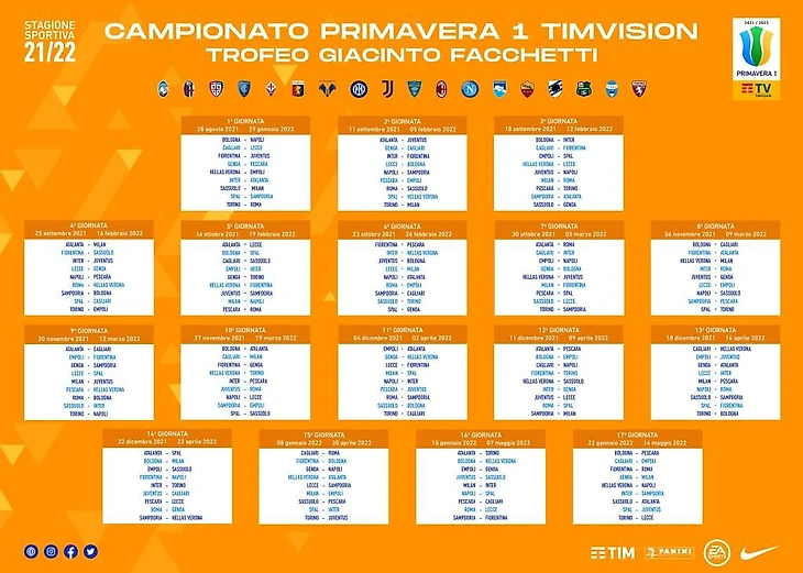 Начну с того, что лига "Primavera 1 TIM" расширилась до 18 команд, естественно, число регулярного чемпионата увеличилось до 34 матчей. Прямой "вылет" в "Primavera 2" грозит последним двум неудачникам сезона, первая и вторая команды начинают розыгрыш приза "Факетти" с полуфинала, а 3-6 оспорят выход в 1/2.