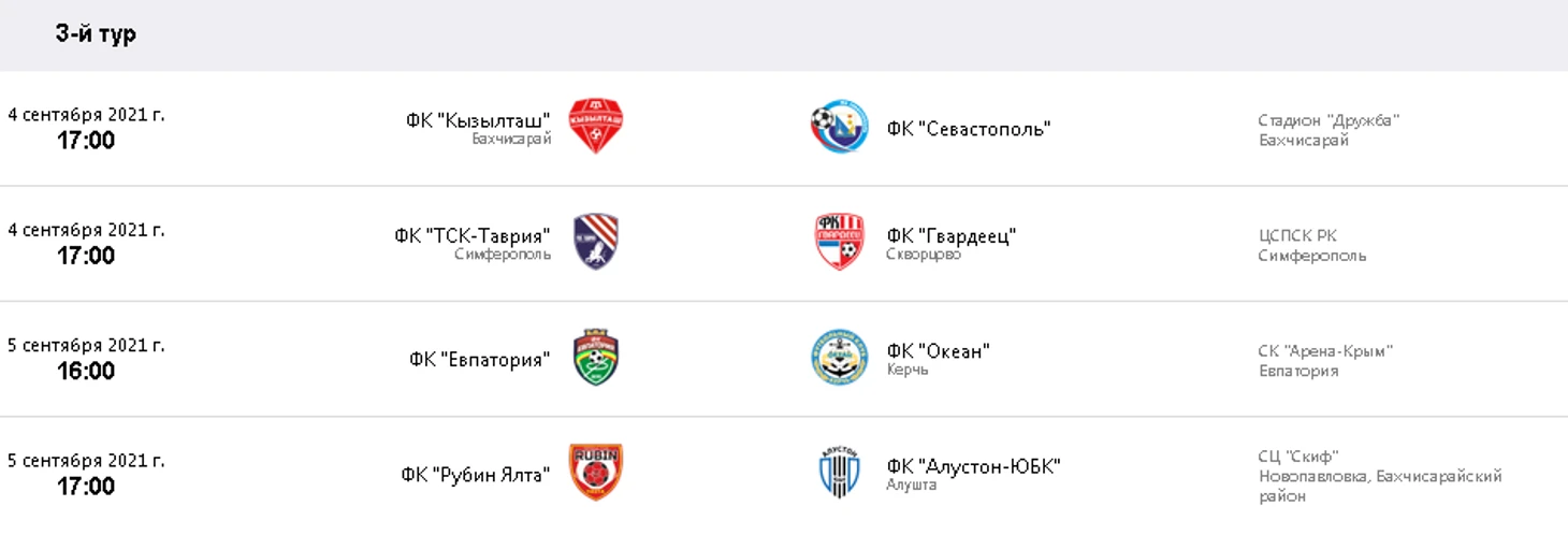 Евпатория чудит, но исправляется. Алустону везет и не везет. Рубин старается. Севастополь вытягивает игру. Гвардеец забивает и сушит. Кызылташ налаживает игру. Океан прессингует. Таврия забивает.