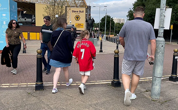 Приезд «МЮ», конечно, сдвинул фокус внимания вокруг матча с хозяев на гостей. От Манчестера до Вулверхэмптона – всего полтора часа на поезде (и всего 20 фунтов за билет на него; для сравнения, до Лондона – 100), так что фанаты заезжали в город накануне или с утра, и местные пабы с открытия были забиты и местными, и приезжими. Я прошла по центру города в 11 утра: улицы были пустые, но в заведениях спокойно сосуществовали болельщики играющих друг с другом команд.