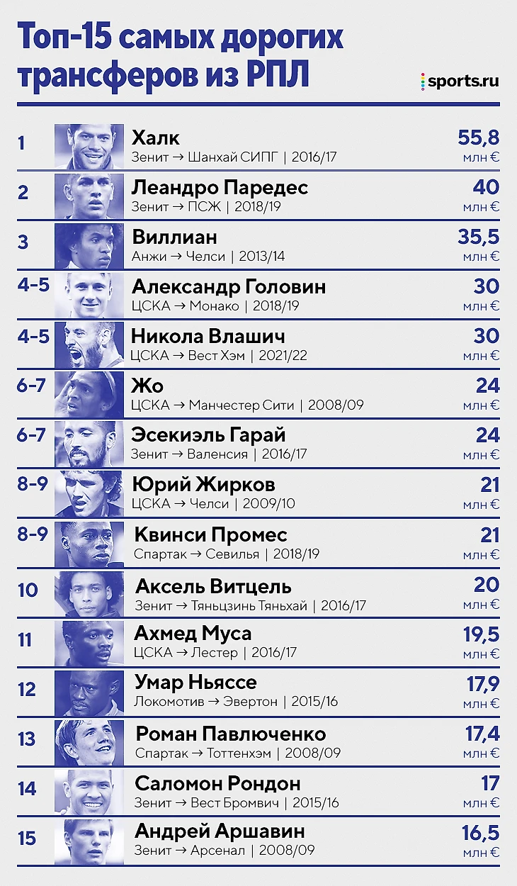 А как переход выглядит в историческом контексте? Тоже сильно – в топ-5 главных трансферов в истории РПЛ на выход.