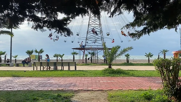 Батуми довольно контрастный город, с одной стороны хаотичная застройка старого города, с другой возвышающиеся над морем небоскребы и высотки в новых районах города. В середине июля самый разгар туристического сезона, но из-за ковидных ограничений туристов не так много, как могло бы быть, хотя народу все равно хватает.