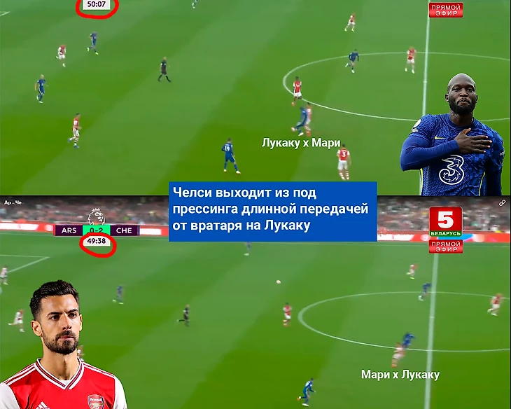 Не секрет, что Ромелу анализирует игру соперника и выбирает самого слабого центрального защитника, дальше провоцирует его, чтобы тот шел с ним в борьбу, правда в моментах на скриншоте Мари выиграл оба единоборства.