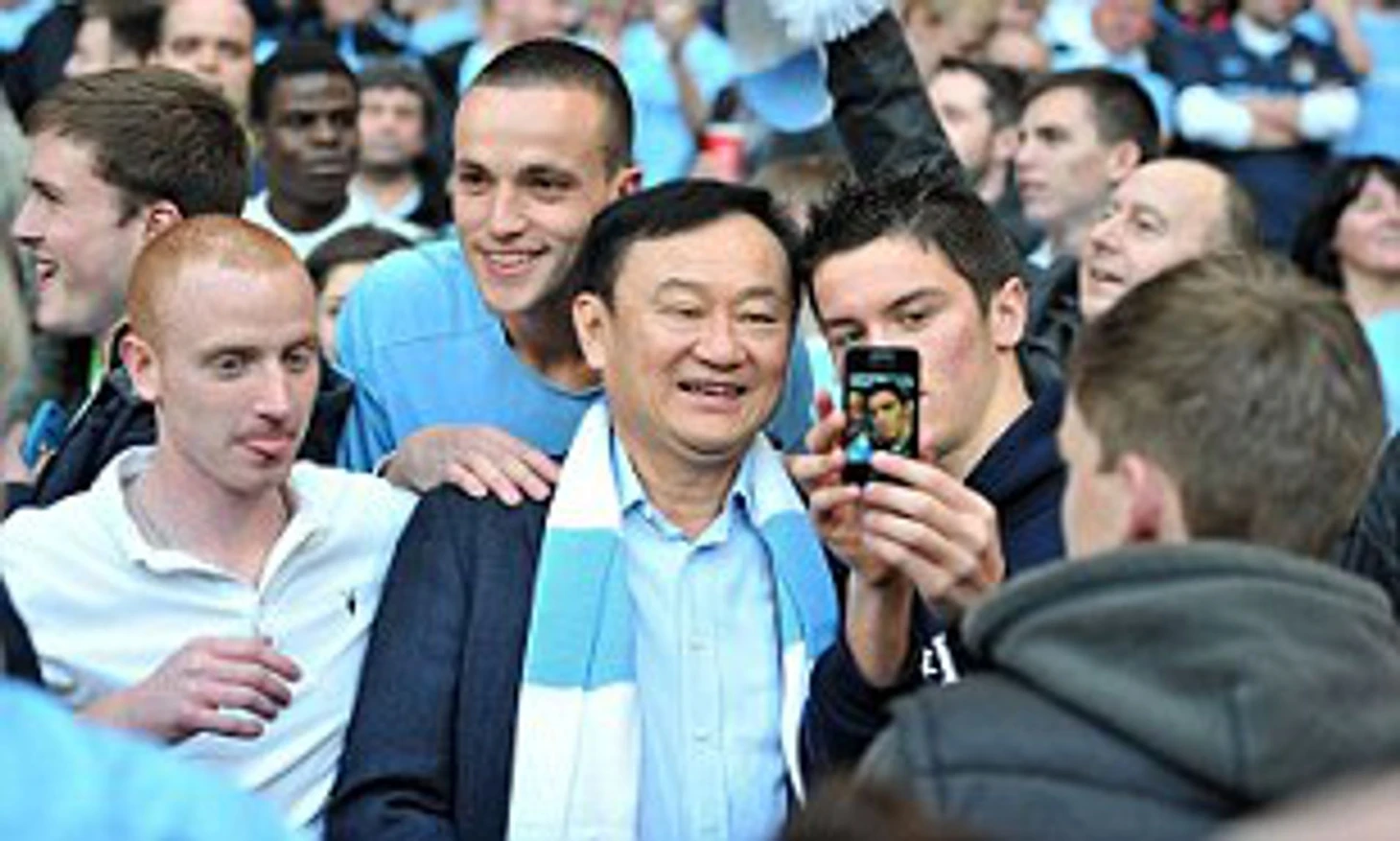 То, что бывший премьер-министр Таиланда также любил петь на публике, было простым совпадением. Вскоре после приобретения клуба он устроил вечеринку для 8 тыс. болельщиков на Альберт-сквер в Манчестере, где он накрыл шведский стол с тайской лапшой и привез тайскую поп-звезду для разогрева, прежде чем начать свое собственное напевное исполнение принятого гимна «Сити», джазовой версии песни «Голубая луна».