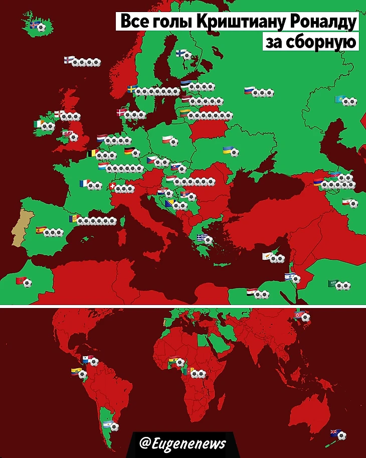 Все 52 стадиона, на которых Криштиану Роналду не забивал в составе сборной: