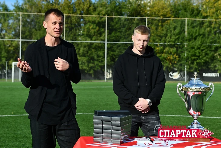 Перед началом тренировки команду Владимира Джубанова ждал сюрприз: на поле ребят встречали футболисты главной команды ФК «Спартак» Артём Ребров и Николай Рассказов. Второй, кстати, является выпускником Академии имени Фёдора Черенкова. Оба футболиста приехали в Сокольники специально для того, чтобы вручить ребятам подарки в память о победе на проходившем в июне Первенстве России. Напомним: звание сильнейшей команды страны в своей возрастной категории красно-белые завоевали в финальном противостоянии со сверстниками из московского «Локомотива» (2:0). На пути к решающему поединку наша команда обыграла питерский «Зенит», «Новосибирск», «Аланию» (в группе), «Строгино» и «Чертаново».