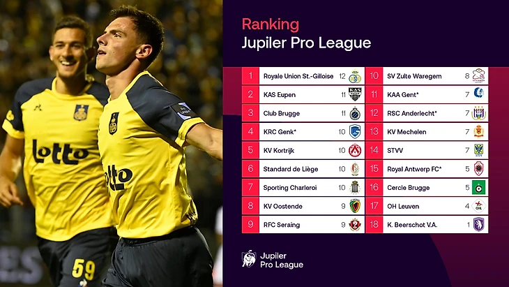 Турнирная таблица чемпионата Бельгии по итогам шестого тура