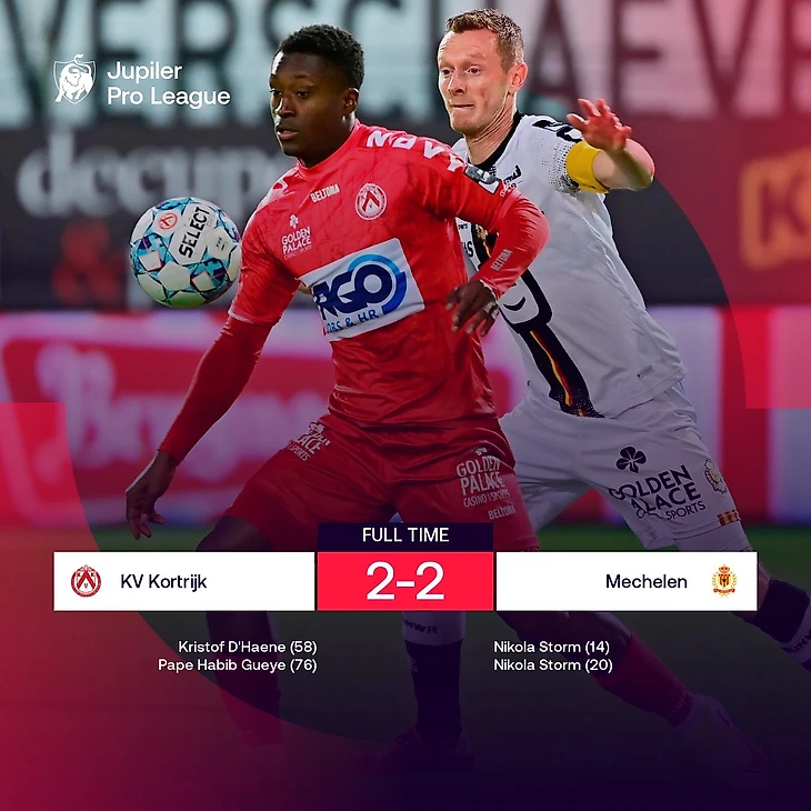 За «Мехеленом» были первые 20 минут матча и последние десять. За «Кортрейком» – значительная часть второго тайма. Если судить по активности в атаке и количеству моментов, то ничья кажется справедливым результатом. Если же оценивать «вес» ударов, то даже удивительно, что хозяева смогли отыграться с 0:2 – но комбинация мастерства и везения дает результат.