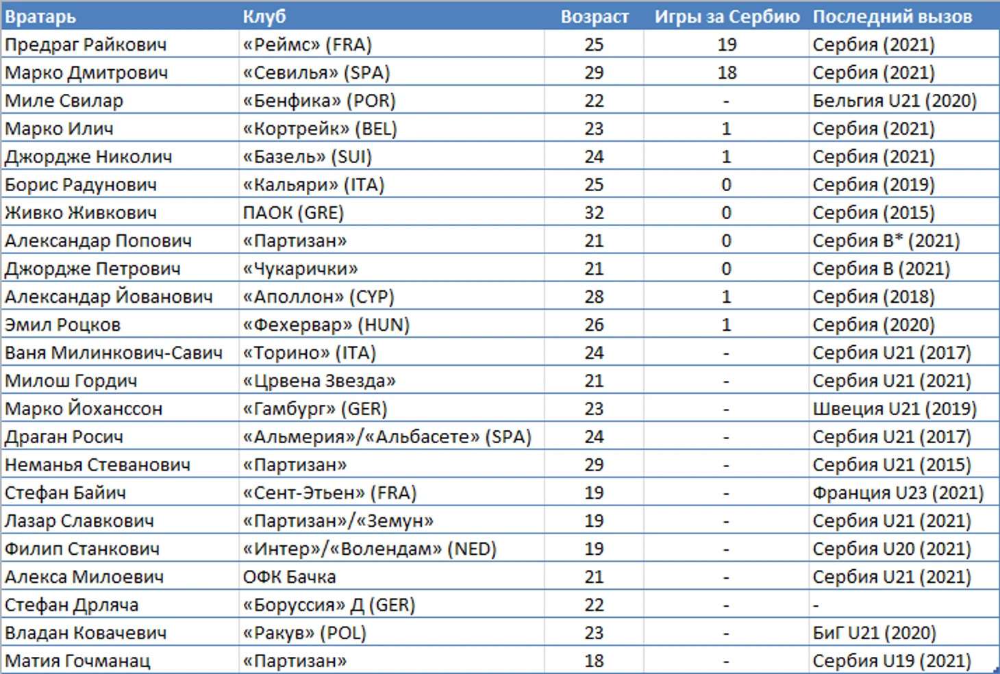 Коротко разберём конкурентов Свилара в репрезентации Сербии. Составил список из 23 кандидатов на место в воротах:
