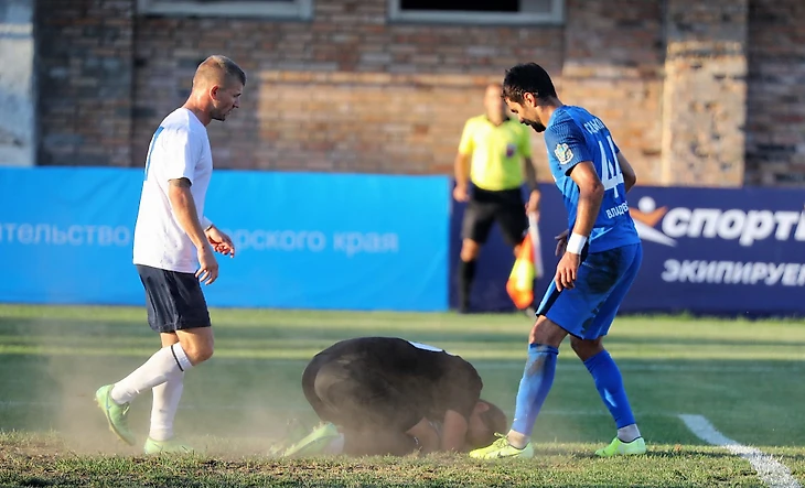 И в матче с «Соколом» «Динамо» забило забавный автогол уже на первых минутах: 36-летний капитан команды Артем Федоров завозился с мячом в своей штрафной и выбил прямо в ногу Руслану Гордиенко – воспитаннику владивостокского футбола, который поиграл в «Соколе». Он не стал праздновать гол.