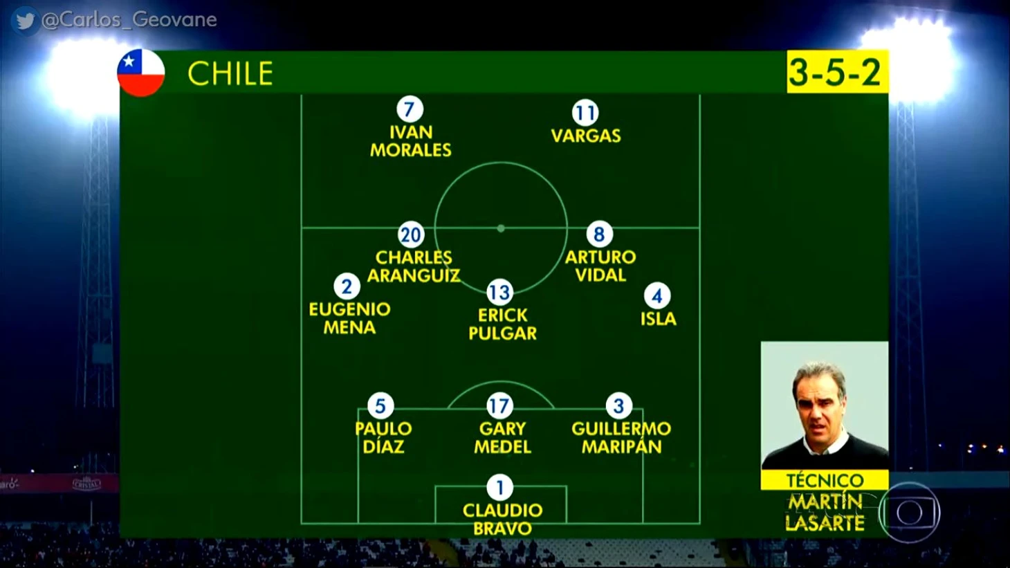 Первый тайм. Владение 70/30 в пользу Чили. Тотальное превосходство