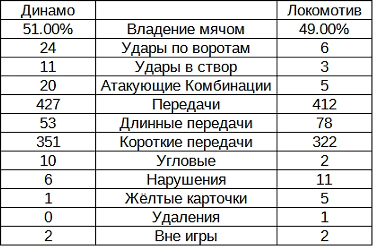 Выводы. В этой игре Динамо сыграло настолько агрессивно и динамично, что Локомотив был похож на состав, который медленно разгружают на сортировочной станции и лишь один машинист в лице Смолова изредка торопил «рабочих». Фёдор был одним из немногих, кто постоянно искал и контролировал мяч. Я даже не припомню, когда в последний раз я видел столько успешных обводок у Смолова, который этой игрой доказал, что по праву является главным нападающим сборной России. У Динамо же можно отметить всех, пусть даже кто-то и не выделялся на протяжении всей игры (Шунин, Захарян, Варела, Грулёв). Очень качественно сыграла тройка мушкетеров Моро-Фома-Шима. При этом не только коллективно, но и индивидуально. Однозначно лучший матч провёл Моро. Недаром все трое получили вызовы в свои национальные сборные. Макаров привыкает к мощному футболу Шварца и в этой игре смотрелся очень хорошо, чего пока не скажешь о его точности. Впрочем, сегодня у многих наших игроков был сбит прицел, но главное — мы создаём моменты. Пусть эти моменты пока не приносят результат, но глаз радуется тому, какими разнообразными способами мы их создаём: и индивидуальные проходы по краям и центру, и комбинационный розыгрыш мяча, и точные кроссы в штрафную соперника. В этой игре опять немного выпал Захарян, но это вновь связано с тем, что ему нечасто адресовали мяч. Посмотрим, с какими эмоциями вернётся он и Тюкавин из сборной России. Косте же в дерби просто фатально не везло. Не смотря на постоянное давление Динамо, Локомотив всё же продемонстрировал, что также является одним из лидеров этого сезона. Динамо уходит на двухнедельный перерыв занимая вторую строчку, отставая от пугливо оборачивающегося Зенита на одно очко. Следующая игра будет против Нижнего Новгорода Александра Кержакова.