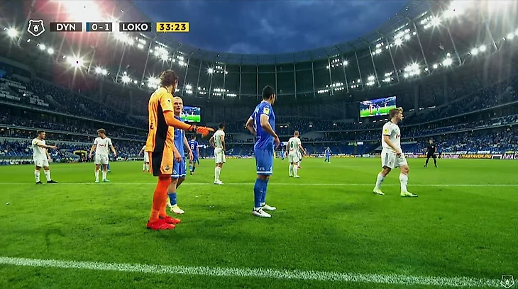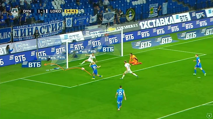 Первый тайм. Игра началась без раскачки. Динамо традиционно прессинговало, чаще подбирало мячи, очень был активен Макаров на правом фланге, а Локо пытался контратаковать. За первые пять минут два раза Макаров и раз Моро наносили удары издали, но мимо цели. Первый же по-настоящему опасный момент был у Даниила Фомина: Бальбуэна классно разрывает оборону железнодорожников пасом на Тюкавина, Костя вторым касание выводит Даниила на ударную позицию и Гильерме взглядом провожает мяч, пролетевший в сантиметрах от штанги.