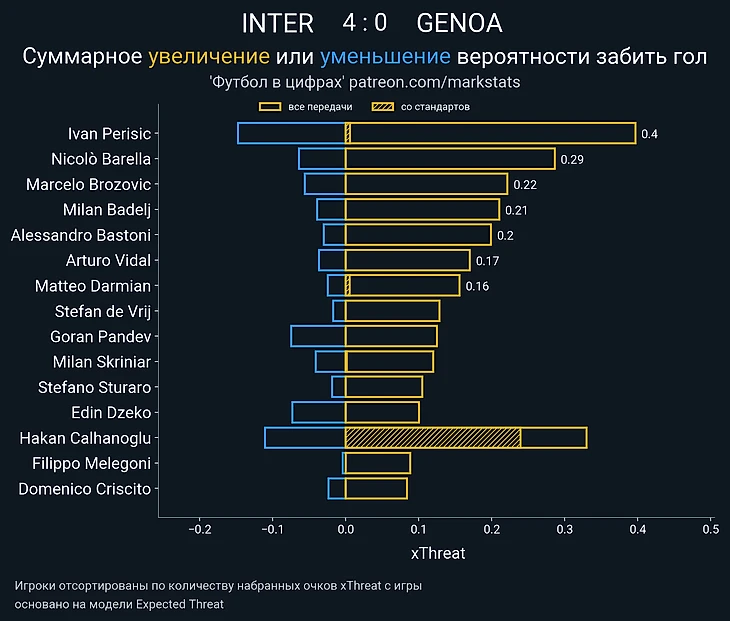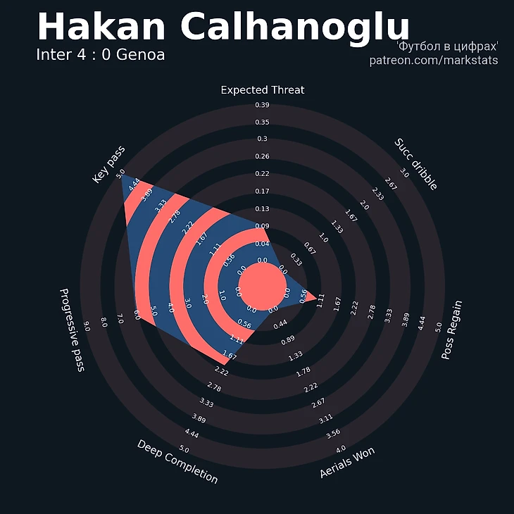 Так же стоит отметить, что Хакан после перехода в Интер остается одним из самых опасных игроков в Европе на стандартных положениях.