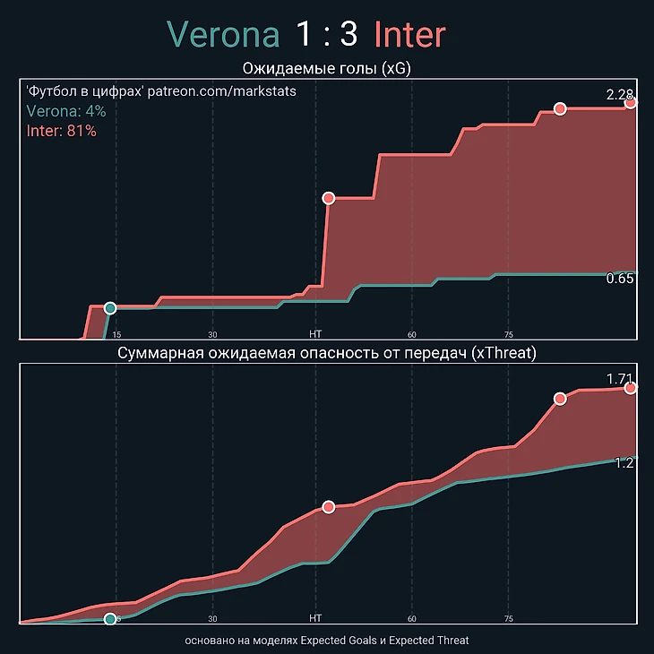 Начало сезона внушает оптимизм, но поклонники Интера должны помнить первый сезон Конте, когда хорошее начало закончилось подаренным чемпионством Ювентусу. Работа Индзаги уже видна очень хорошо и если Симоне выжмет из этого Интера, столько же, сколько из Лацио в ковидном сезоне, то шансы на чемпионство очень велики. Теперь немного статистики