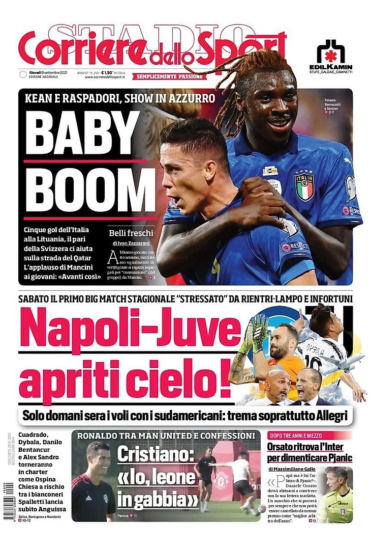 Бэби бум. Заголовки Gazzetta, TuttoSport и Corriere за 9 сентября
