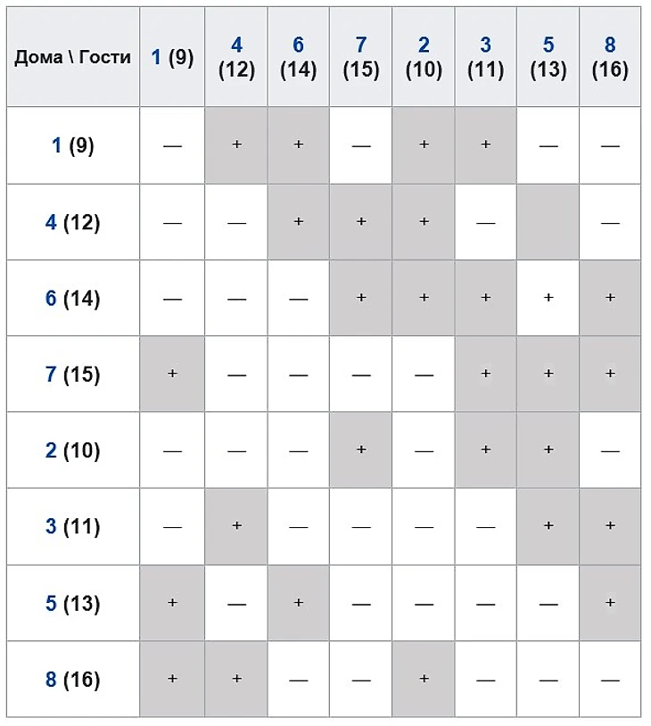 10) За сезон ТОП-8 команд играют 15 матчей дома, 19 на выезде.