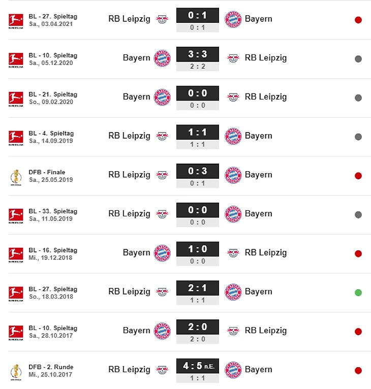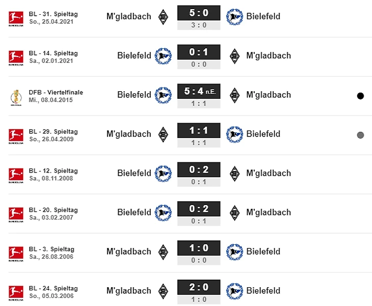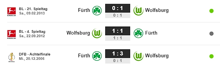 Последние очные встречи (здесь и далее fussballdaten.de)