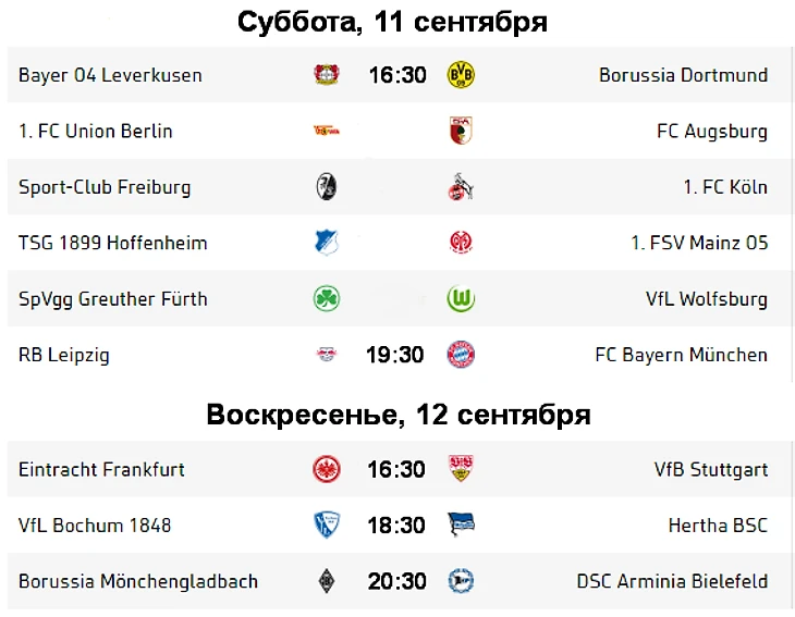 Розыгрыш 4-го тура стартует сразу пятью матчами, например, дуэль «Байере» с дортмундской "Боруссии". А на закуску субботы «РБ Лейпциг» примет "Баварию". В воскресенье пройдут еще три матча.