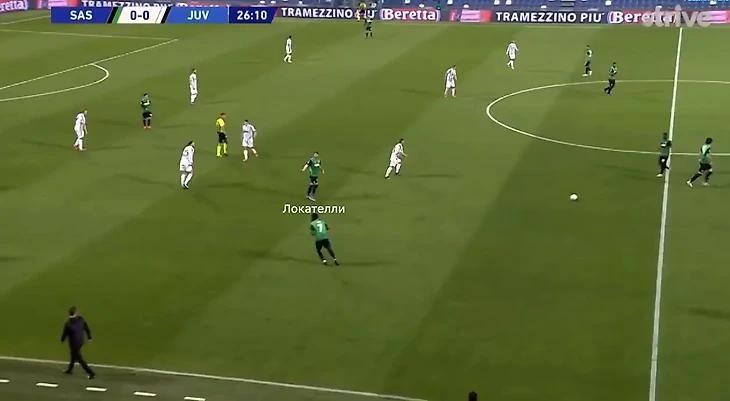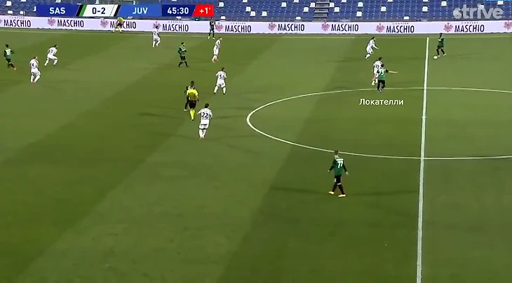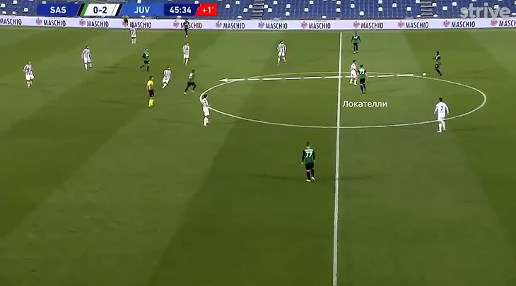 Слева атака увязла, и Локателли тут же пришел туда: стянул соперников и отдал за линию прессинга.