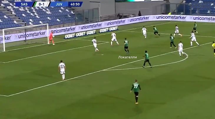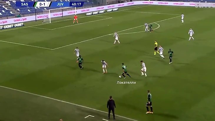 Следом Ману увел опекуна из зоны и открыл коридор для вертикального паса. «Сассуоло» в две передачи прошел две линии прессинга благодаря незаметному движению Локателли.