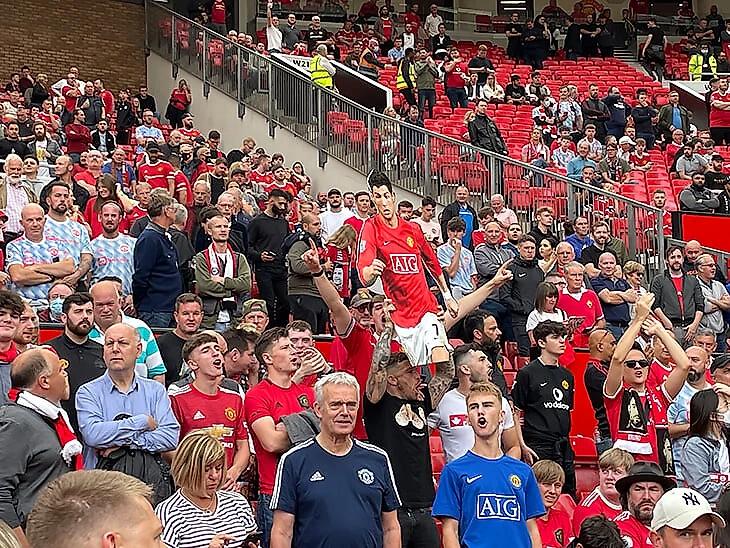 Роналду как будто никуда и не уходил: его портреты вместе с другими легендами клуба разбросаны по всей подтрибунке «Олд Траффорд».