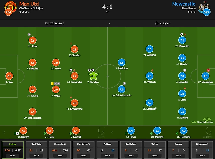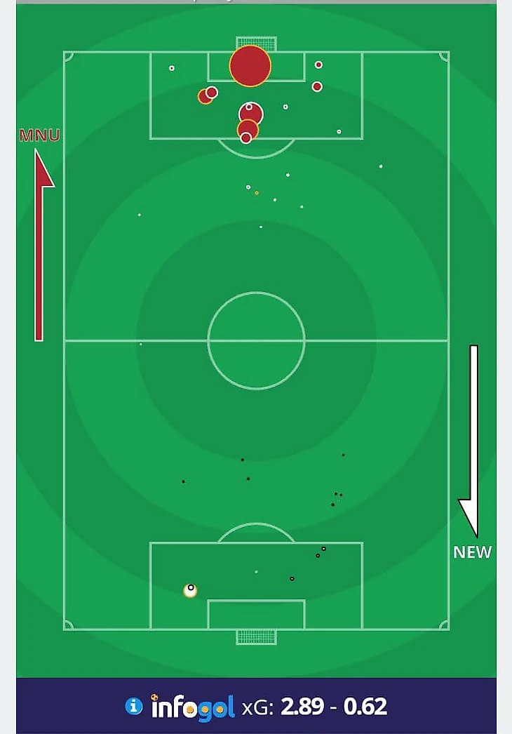 Ньюкасл играл от и до предсказуемо, но против сильного соперника команда Брюса по-другому никогда и не умела. Первые 10 минут сороки практически не отходили от своей штрафной, а МЮ пытался вскрыть по-настоящему мощный английский автобус.