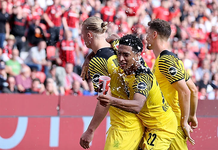 Суперсцена после победы «Боруссии» в боевике: Беллингем поймал брошенный стакан с пивом и отхлебнул