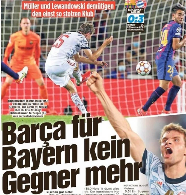 Просто, сложно не согласиться с обложкой издания «Bild», которая сообщила германоязычному миру о том, что, мол, «„Барселона“ — больше не соперник для „Баварии“». И вроде бы да, но мне кажется важным поставить в эту фразу ещё одно слово. Такая. «Такая „Барселона“ — больше не соперник для „Баварии“».