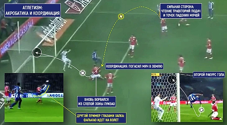 Другое фантастическое качество Фалькао того периода – акробатика. Как после этого мягкого наброса с фланга: