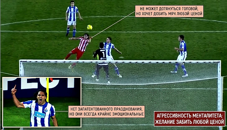 Агрессивность была предустановлена в менталитет форварда. Желание забить было столь велико, что, не дотягиваясь до мяча головой, Радамель тянулся к нему рукой, по инерции: