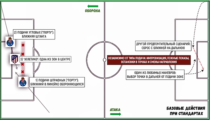 Второй момент, который мог бы послужить оправданием обороне – нельзя сказать точно, действительно ли движение форварда на стандартах было запланировано или Фалькао действовал по ситуации. Умеешь двигаться на столь высоком уровне – импровизируй, рисуй какие хочешь траектории, выбирай на свое усмотрение и атакуй слабые точки за счет чутья. Обычно стандарты расписывают от и до, но не исключено, что Фалькао лучше чувствовал их изнутри и действовал по обстоятельствам: