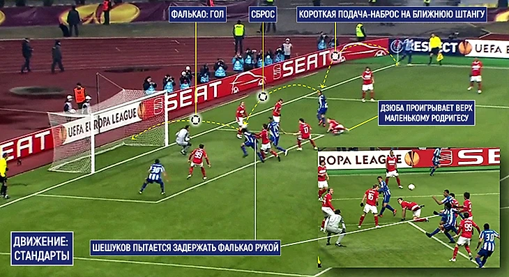 Есть ощущение, что на стандартах в атаке Фалькао даже не давали конкретных установок, полагаясь исключительно на его умение ориентироваться в столпотворениях (либо установки были максимально широкими, общими). Вот лишь несколько черт игры колумбийца при стандартах: