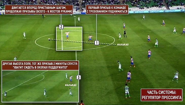 Симеоне требовал от Фалькао прессинговать защитников, мешать свободному выходу мяча на половину «Атлетико»: