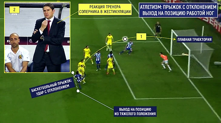 Здесь Фалькао – спринтер на черте. Никто просто не ожидал, что Фусиле (да кто угодно!) оттуда ударит по воротам, но колумбиец ждал. Да, Асенхо тут не справился с фиксацией удара, но Фалькао верил в подобные ошибки. Проигрывать метры на старте и выиграть сантиметры на финише – суть форварда.