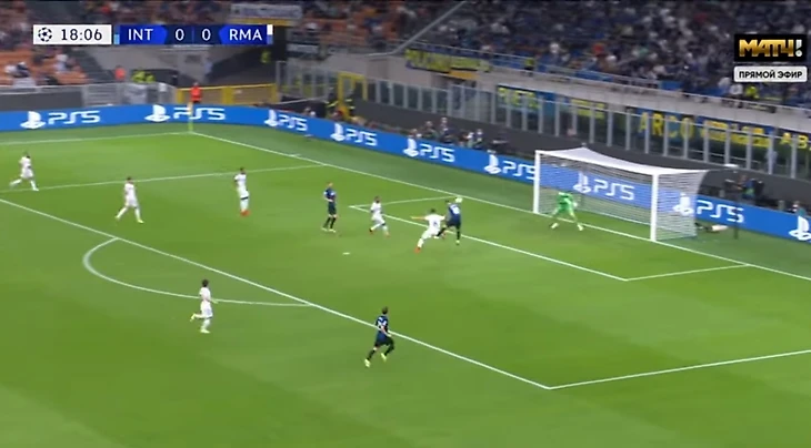 Уже на 9-й минуте Лаутаро Мартинез придумал проникающую передачу, отрезав тем самым двух цэнтрбэков (Алабу и Милитао). Начо потерял линию, и поэтому Джеко оказался не в офсайде и опасно шмальнул.