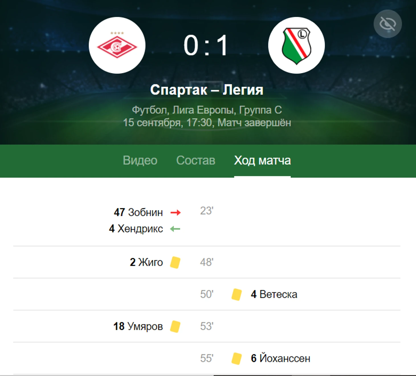 "Спартак" принимает "Легию" в первом матче группового этапа Лиги Европы. Всё идёт к тому, что матч завершится вничью, но так происходит только до 90-й минуты. Дальше появляются люди с говорящими фамилиями. Десять лет назад - Януш Гол, сейчас - Лирим Кастрати. Московский клуб снова терпит обидное поражение. На этот раз 1-0.