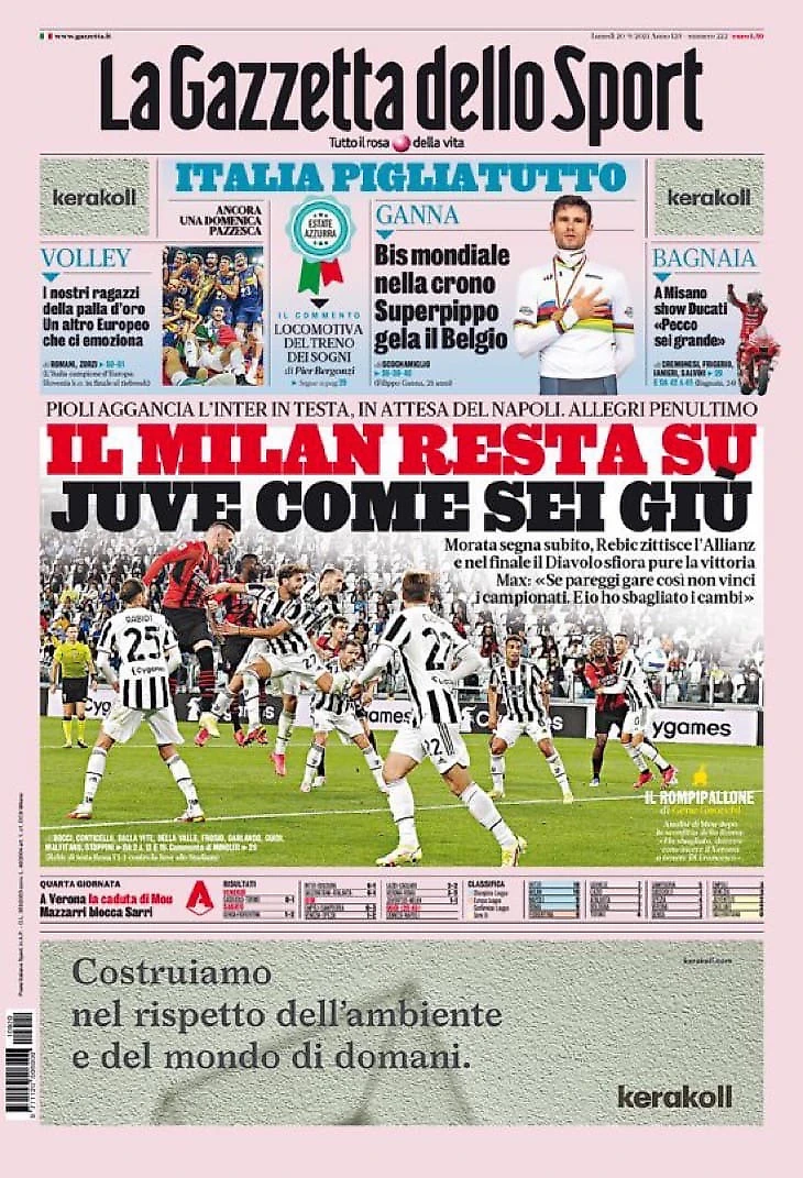 Ничья «Милана» с «Ювентусом» и кризисная ситуация у Бьянконери, а также другие матчи тура Серии А – в утреннем обзоре заголовков итальянских спортивных изданий в блоге «В гостях у Кальчо».
