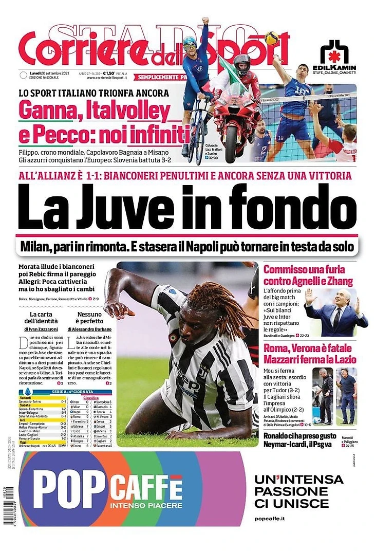 Кризис «Юве». Заголовки Gazzetta, TuttoSport и Corriere за 20 сентября