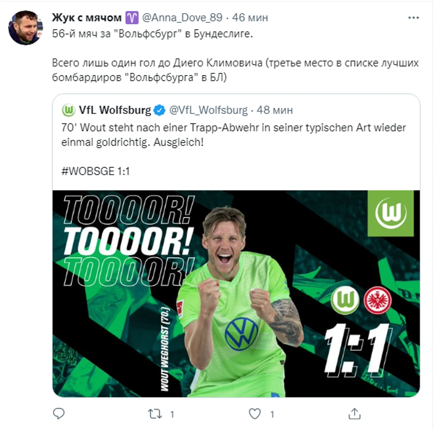 Без 100%-го. «Вольфсбург» 1:1 «Айнтрахт»