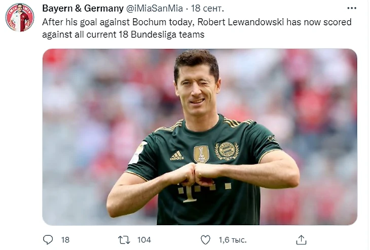 Роберт Левандовски забивал всем 18 командам в Бундеслиге