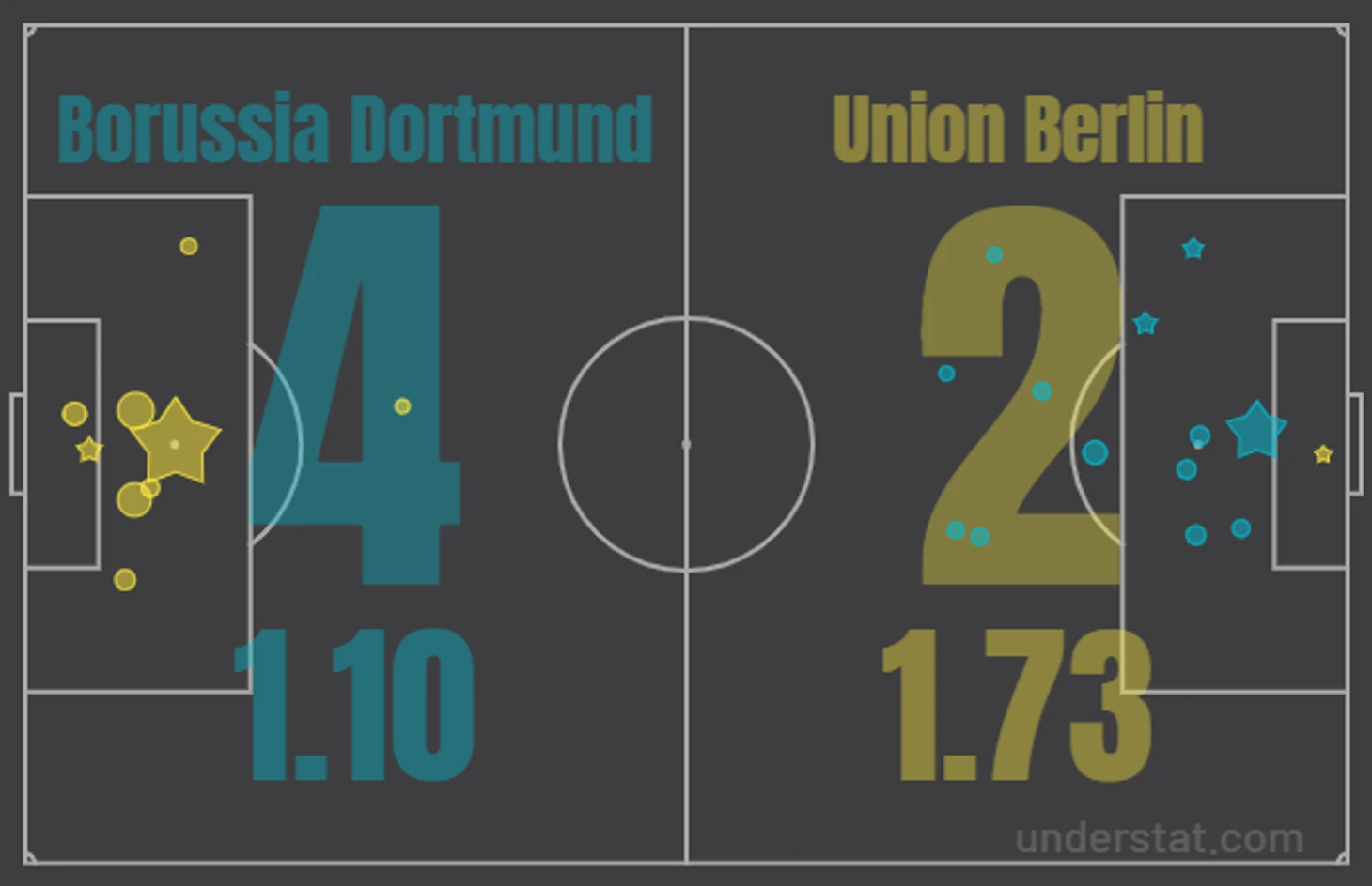 Дортмундцы, правда, сумели сделать самое главное в играх с «железными» - забить быстрый гол. Его автором стал Рафаэль Геррейро на 10-й минуте. После этого «Боруссия» владела инициативой и контролировала ход матча. При этом, как частенько бывает у подопечных Марко Розе команда начинает резко как будто бросать играть. Также было и в этой игре, когда счёт 3:0 достаточно плавно трансформировался в 3:2 и всех поклонников жёлто-черных ожидала весьма напряженная концовка, но со счастливым концом.