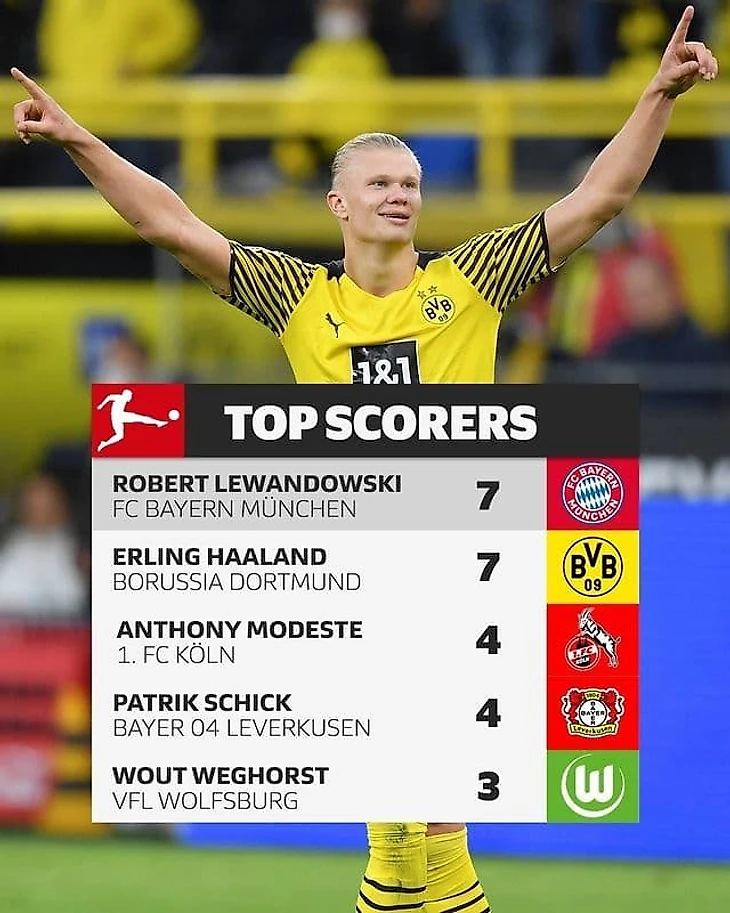 Норвежский нападающий хозяев Эрлинг Холанд отметился в этой встрече дублем, причем второй свой мяч он забил в очень красивом стиле, направив мяч по какой-то невероятной зигзагообразной траектории после чего мяч залетел в ворота. При этом скандинав забивает на протяжени 7 матчей подряд во всех турнирах в которых принимает участие (Бундеслига, отбор к ЧМ-2022, Лига чемпионов). За семь матчей он забил 11 мячей. При этом в бомбардирской гонке Бундеслиги после этого тура он сравнялся с поляком Робертом Левандовски, который выступает за «Баварию». У обоих в активе по семь забитых мячей, однако у норвежца четыре забиты с пенальти, а у Левандовски – все с игры.