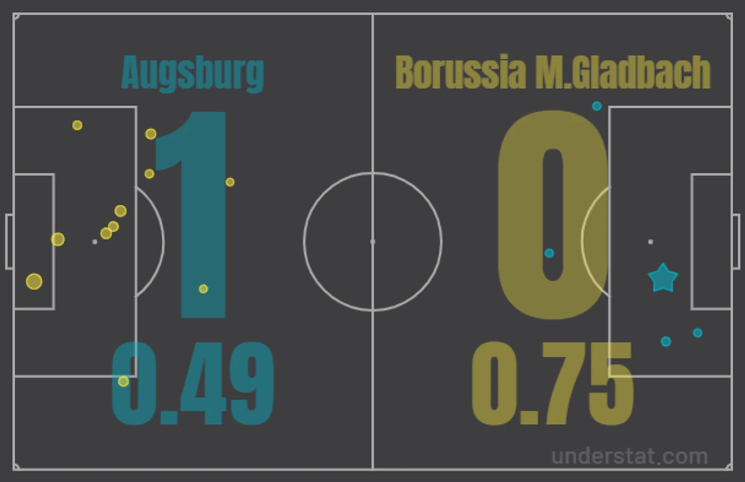 В матче пятого тура в Аугсбурге подопечные Ади Хюттера владели инициативой (владение 63% - 37%), однако этого в футболе мало. Необходимо ещё забивать. К сожалению, с этим у гостей были проблемы. Зато команда из Баварии куда более бережно отнеслась к своему шансу. В итоге единственный удар в створ привёл к голу, да еще и победному.