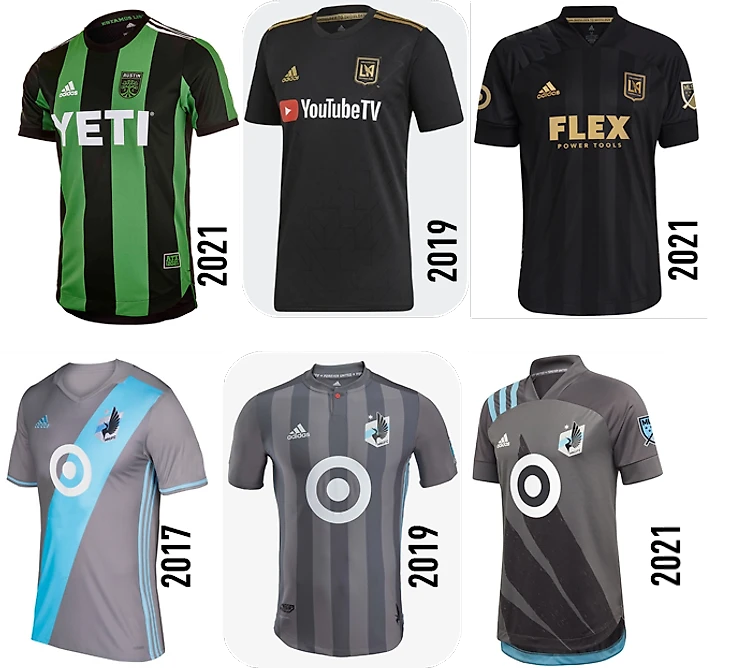 Краткий обзор маек клубов-нубасов. Все они появились после 2013го, а потому комплекты ожидаемо скучные. Выделяется Остин, но он просто хорошо сделан, ничего лишнего, но и ничего такого. На тыльной стороне ворота написано Estamos Listos, что мне до сих пор кажется удивительным. Опять же, пример РСЛ перед глазами. Вот вам гол Себы Дриусси: