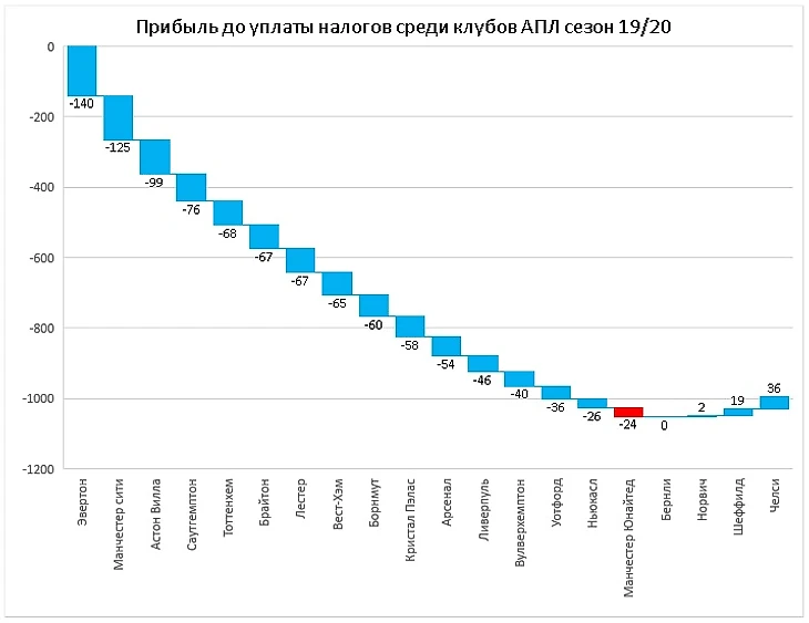 Однако даже не смотря на это, убытки клуба в разгар ковидных ограничений не выглядят пугающими. Достаточно сравнить их с цифрами остальных клубов АПЛ за сезон 19/20, когда большая часть матчей прошла в присутствии болельщиков.
